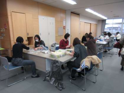 会議室にて、PTAの皆様によるベルマークの集計作業が行われました。