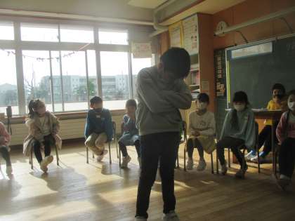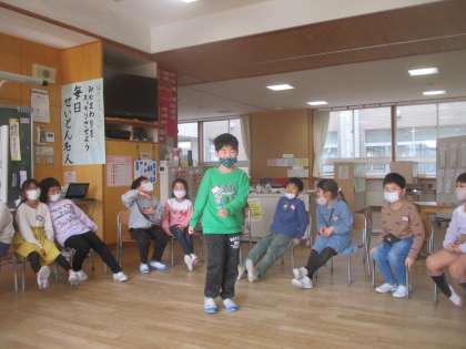 転出する友達にありがとうの意味を込めて、ありがとう集会をひらきました。転出する友達からのクイズにも楽しんで答えていました。離れていてもずっと友達です。