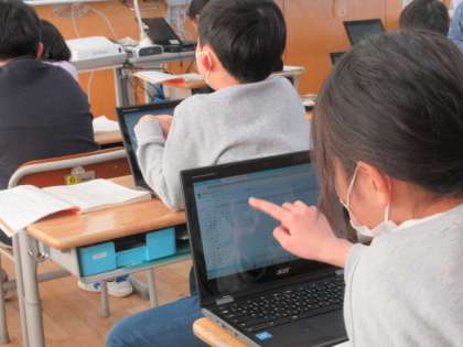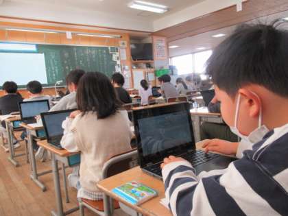 五・七・五のリズムをもってつくること、そして同じ漢字の音と訓を用いること、この二つの条件のもとに、楽しいカルタをつくっていきます。作成はクロームブックに。すぐに作品を共有することができます。