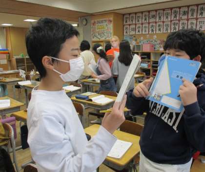 学びを生かし、活発に問題を出し合っていました。