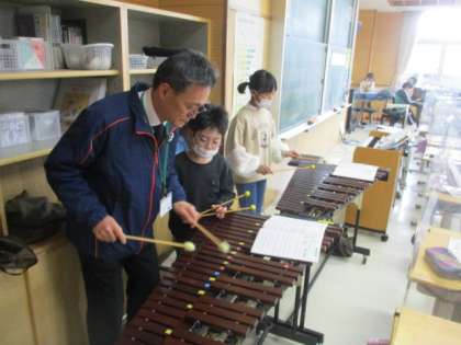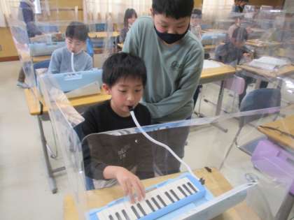 音楽科では、「茶色のこびん」の合奏をしています。子供たちはリズムを合わせてみんなで練習をしました。意欲的に学習に取り組むことができました。
