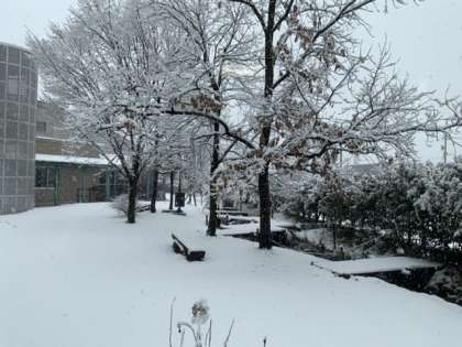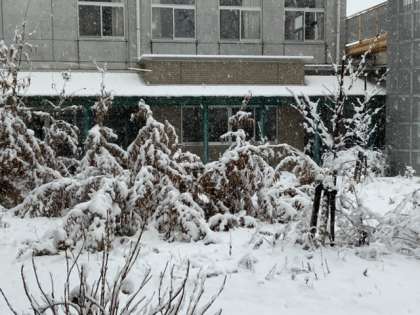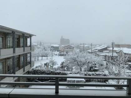 学校敷地は雪で真っ白になりました。