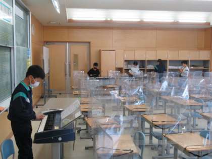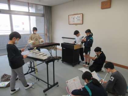 グループでアンサンブルをつくります。視点は、「音のバランス」です。互いに聴き合い、それぞれの楽器の音量がどの程度であれば、みんなの音がブレンドするか試行していきます。