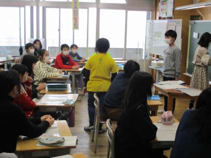 総合的な学習の時間では、卒業まで悔いなく過ごしたいという思いからスタートした卒業プロジェクトに取り組んでいます。