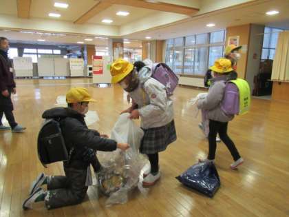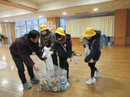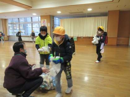 今回は室内で回収しました。たくさんの子供たちが協力してくれました。ご家庭にも感謝です。