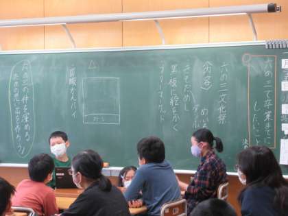 卒業までにやっておきたいことについて話し合いました。楽しい思い出を心にしっかりと残していこうと積極的に意見を交わし合っています。