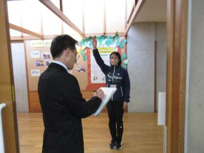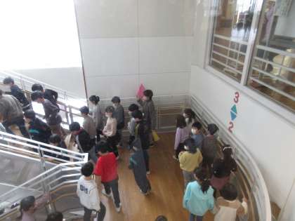地震の後に津波が起こったという想定で、全校児童が3階に避難しました。