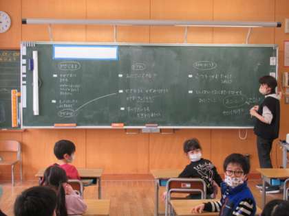 冬の遊びの工夫について学習しています。今日は、その取組から考えたことについて話し合いました。遊び方のみならず、その遊びの生かし方についても子供たちは真剣に考え、積極的に意見交流をしました。