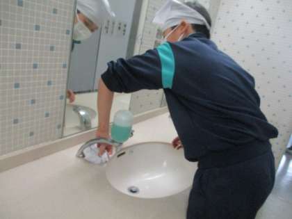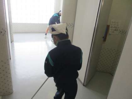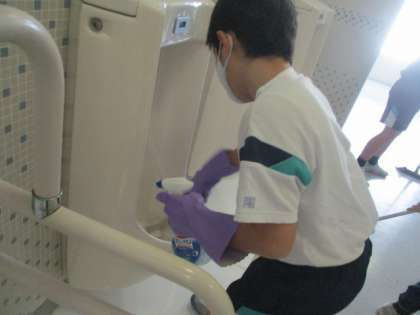 掃除も一生懸命頑張っています。トイレでは、冷たい水にも負けず、集中して取り組みました。