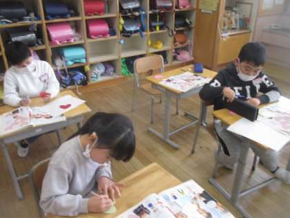 生活科「わたしたんけん」では、すてきカードを書いています。「2ねんせいになって、給食を早く食べられるようになったね。すごいね」「野菜のお世話をしているとき、野菜のことをたくさん教えてくれてありがとう」などと、友達のすてきなところ、できるようになったところをカードにして渡します。友達からの温かいメッセージを受け取り、思わず笑みがこぼれる子供たちでした。