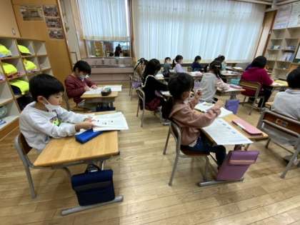国語科「たぬきの糸車」の学習です。登場人物の気持ちを叙述から捉えていきます。挿絵が有効な手立てとなります。