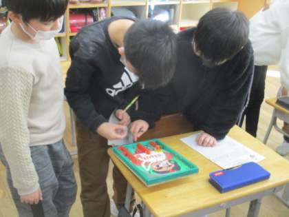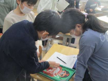コリントゲームが完成したので、鑑賞会をしました。子供たちは、互いのゲームをすることを通して、完成度や面白さに気付くことができました。