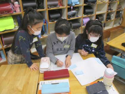 総合的な学習の時間では、自分たちの取組を広めるために、準備を進めています。クイズをつくったり一緒に遊べるようにしたりと、アイディアを出してがんばっています。
