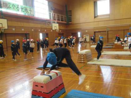 技アップ週間で跳び箱に集中して取り組み、できる技が増えてきました。横跳びも上手にできるようになってきています。段階的な取組が有効なものとなっていることが分かります。
