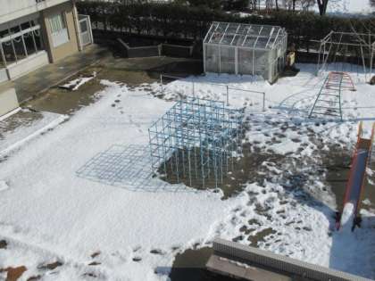 先日より降り続いた雪も落ち着き、積もっていた雪は少しずつとけています。グラウンドや中庭では土の色が見え始めています。