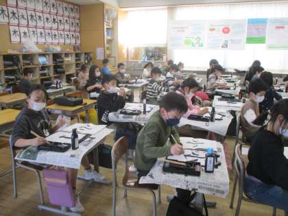 書写の学習では、「小」の文字を書きました。今日で離任されるK先生との最後の授業でした。授業の最後には感謝を伝えました。