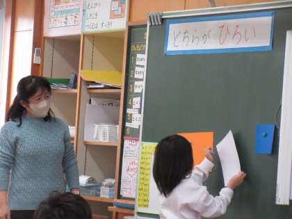 3枚の紙を重ねて比べたり、マスを数えたりするとよいことが分かりました。