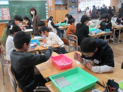 1時間目の理科の時間の様子です。水溶液は、酸性・中性・アルカリ性に分けられることを学習しました。その後、リトマス紙を使って身の回りの水溶液をなかま分けしました。スポーツ飲料や洗剤に興味津々の子供たちでした。