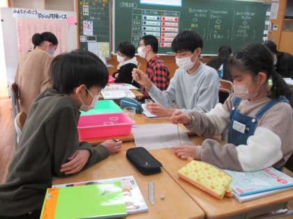 2時間目は算数科の学習をしました。一筆書きができる図形を見つけ、書き方を楽しそうに教え合っていました。