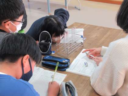 酸性についてノートにまとめました。目の前には、試験管が数本。実験をもとに、分かったことを整理していきました。