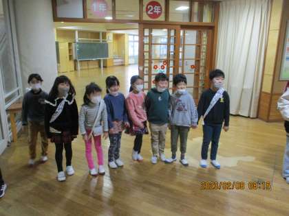1月の挨拶名人が決まりました。たすきを付けて、元気な声で毎日挨拶運動をしています。名人ではなくても、積極的に挨拶運動に参加している子供たちもたくさんいますよ。