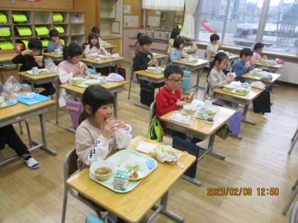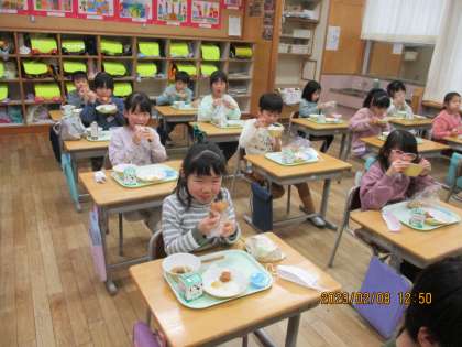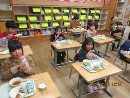 今日は、楽しみにしていた光陽夢ランチの日でした。揚げパンやデザートなど、みんなの大好きなメニューが盛りだくさんでした。おいしそうに頬張っていました。