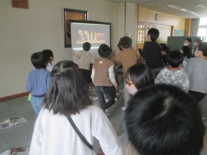 音楽科の学習では、いろいろな地域の祭り囃子を聴き比べました。演奏している映像を見ながら、鉦や太鼓、笛を使っているけれど、地域によって音色や弾き方が違うことに気付いていました。また、ハネトという踊りを実際に踊って楽しみました。