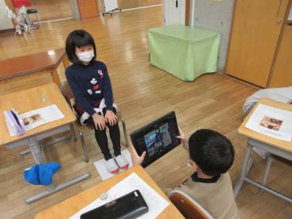 保健室の先生に特別講師をお願いして、「よい姿勢」について教えていただきました。姿勢が悪いとどんなことが起きるのか、とても分かりやすく教えていただきました。最後はクロームブックを使って、互いによい姿勢を撮影しました。これからは姿勢を意識しながら生活できるといいですね。