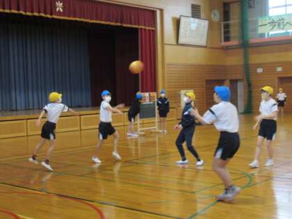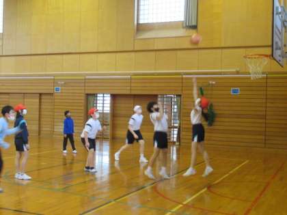 今期でははじめてのバスケットボールの学習となります。楽しくパスをし合い、シュートにも挑戦しました。