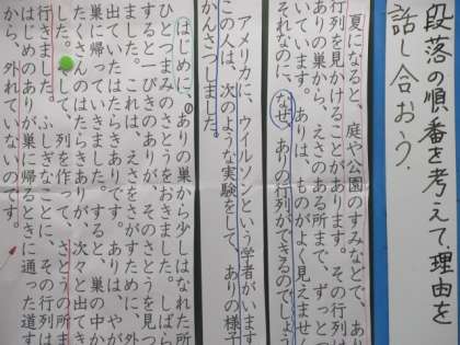 3年 段落の順番を考えてその理由を話し合おう