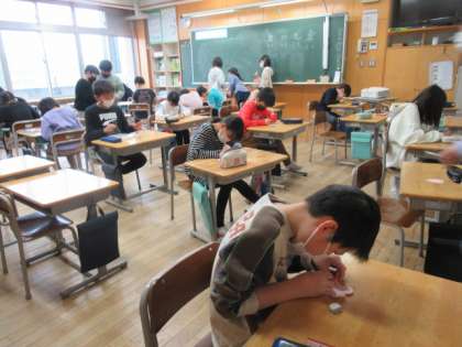 たくさんお世話になった6年生のお兄さん、お姉さんに感謝の気持ちを込めてメッセージカードを書きました。心を込めて贈り届けましょうね。