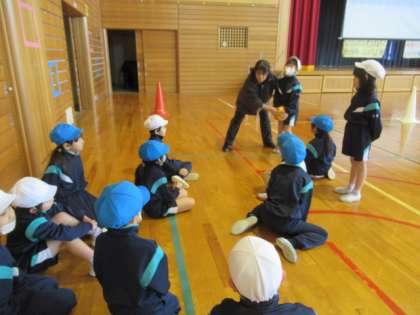 ボール投げゲームの領域の一つであるドッジボールに取り組みました。ゲームの合間には、作戦タイムもします。どのように動けばよいのか、守りと攻めの切替等、かなり熱が入っています。