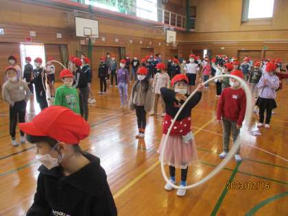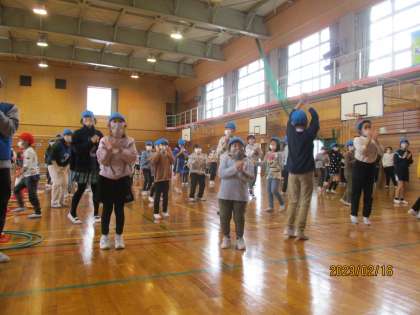 今日は、赤・青団の日でした。ゲームの前には、みんなでダンスをして身体を温める時間もあります。
