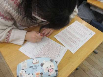算数科の授業では、6年間の復習をしています。今日の算数の時間は、百マス計算にチャレンジしました!計算の正確さとスピードをアップさせるために集中して取り組んでいます。