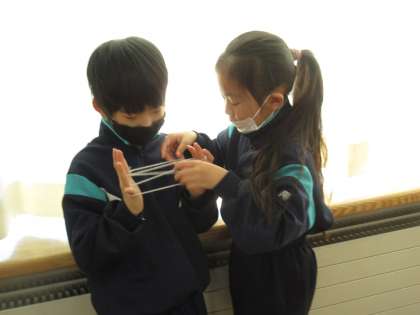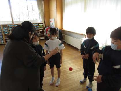 けん玉やお手玉、あやとり、こま回し等から、自分で遊びを選び、目当てをもって取り組んでいます。