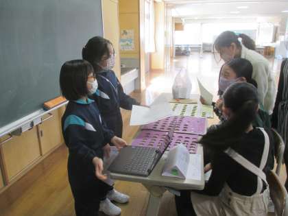 6年生を招待して、エコキャップフェスティバルを開きました。たくさん来てくれたことがうれしかったようで、一生懸命説明したりお礼を言ったりしてました。6年生からすごいねと褒めてもらって、満足げな3年生でした。