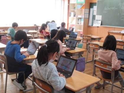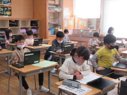 クロームブックを用いて、Meetの使い方を練習しました。これを活用することで、互いに離れているときもコミュニケーションをとることができます。