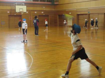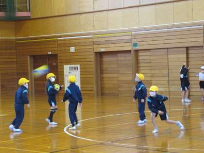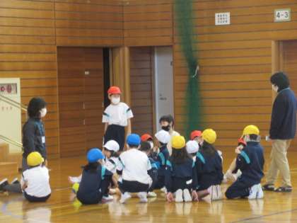 二日間のブランクをおいて、久しぶりの再会。子供たちは、さっそく体育科の学習でみんなといっしょに体を動かして楽しみました。