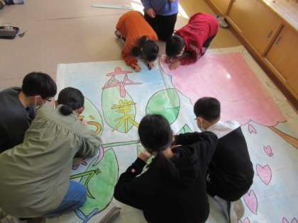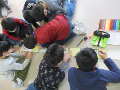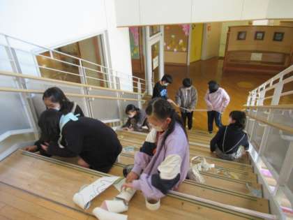 階段アートがさらに大きくなります。5年生の子供たちが力を合わせて取り組んでいます。