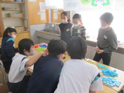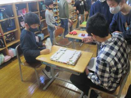 3年生 エコキャップフェスティバル(4年生と) 公開日 2023/03/06 更新日 2023/03/06 3年 今日は4年生を招待して、エコキャップフェスティバルを開きました。始めは緊張していた子供たちですが、だんだんと慣れてきて、自然とお客さんへの声かけができるようになってきました。決められたせりふを言うだけでなく、臨機応変にコミュニケーションをとる力が付いてきたようです。