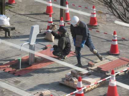 レバーをつけて水を出して確認している姿が。着々と進んでいます。