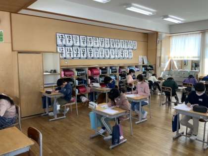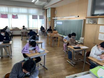 ミニテストは、今回は2枚。気持ちを集中させて取り組む子供たちです。