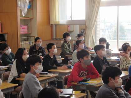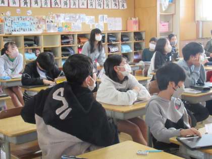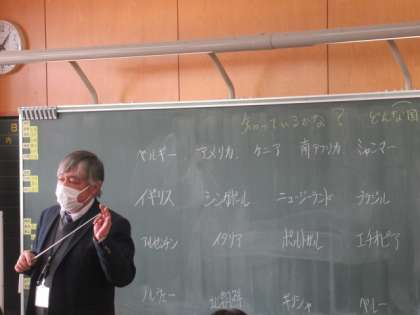 社会科の授業の隙間の時間を使って、国クイズをして楽しみました。黒板にたくさんの国名が書かれています。先生がその国の特徴をいくつか話し、、それをヒントに国名を当てていきます。子供たちの表情は真剣、かつ楽しんでいます。