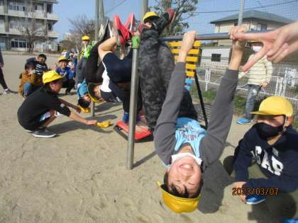 ここ数日は、よいお天気に恵まれました。中にいるのはもったいない!外で思いっきり遊ぶ時間を設けます。けいどろをしたり、鉄棒をしました。体を思いっきり使って遊んでリフレッシュできました。