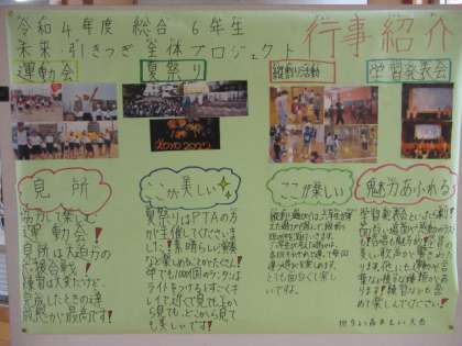 3月13日(月) 6年生からのメッセージ 公開日 2023/03/13 更新日 2023/03/13 光陽の子供たち 職員室前に大きなはりものが2枚。1枚は、在校生に後を託すためのもの、そしてもう一枚は教職員への感謝の言葉です。 今週はいよいよ6年生が登校する最後の週。金曜日には卒業式を迎えます。教室での様子やさまざまなメッセージを見るにつけ、この1年間さらには6年間の子供たちの歩みを想起し、しみじみとした思いになります。