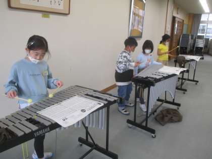 音楽科の学習では、「エーデルワイス」の合奏に取り組んでいます。リコーダーや鉄琴等のパートに分かれて練習をがんばっています。