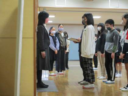 今日の朝、お世話になった思い出の光陽小学校へ感謝を伝える記念品贈呈式を行いました。