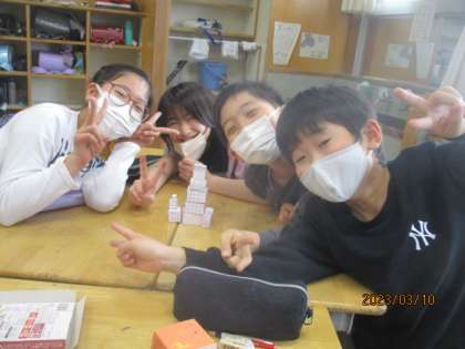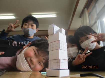 箱を作りました。子供たちは、様々な箱を作り、その特徴に気づきました。4年のまとめに向かって勉強も頑張っています。