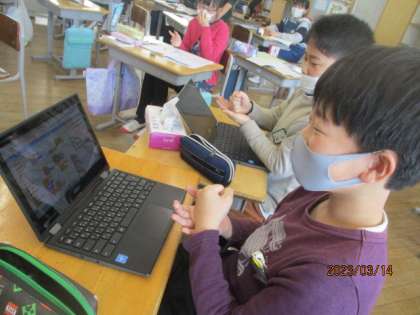 休み時間もクロムブックを使ってブラインドタッチの練習をしたり、スクラッチを使ってプログラミングの練習をしています。