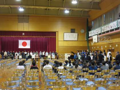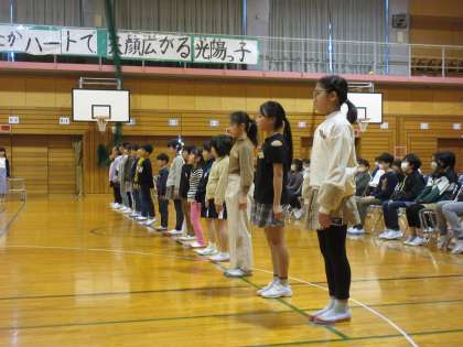 「門出の言葉」は、在校生の代表児童と卒業生とが初めて合わせて行いました。言葉を届けたい相手を目の前にし、互いに気持ちがこもった呼びかけになっていました。
